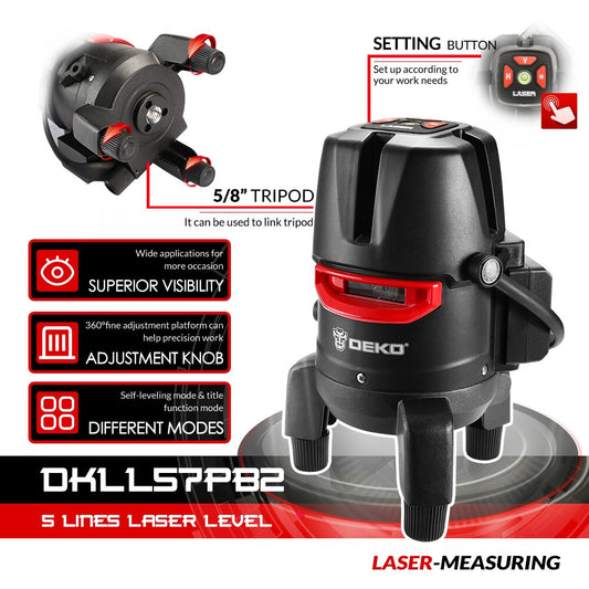 3D Зеленый Лазерный Уровень Нивелир DEKO DKLL57PB2, 5 линий 360° Автоматическое Самовыравнивание