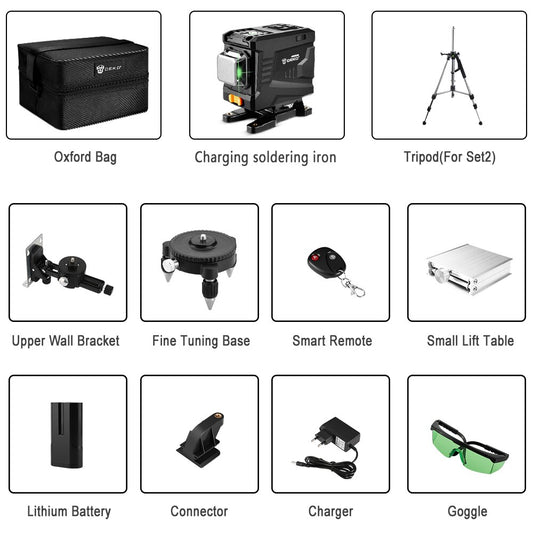 3D Зеленый Лазерный Уровень Нивелир DEKO DKLL12PB1,12 линий, 360° Автоматическое самовыравнивание