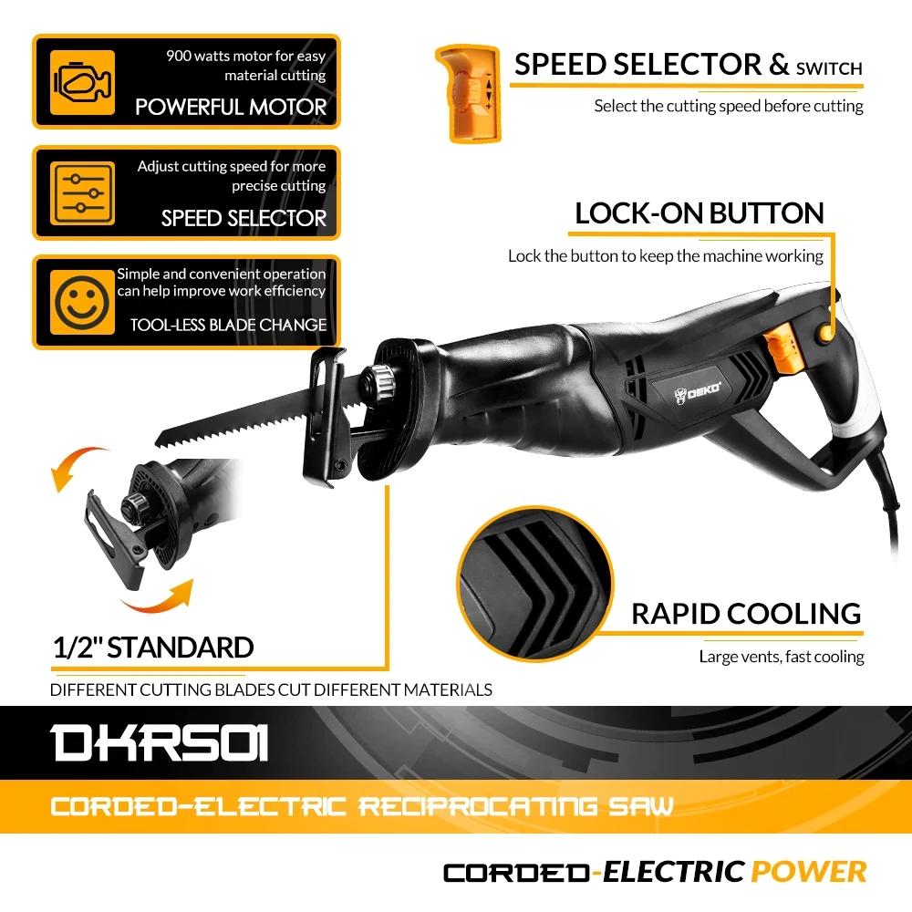 Электрическая Сабельная Пила DEKO DKRS01 900W с Лезвиями